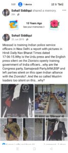 I had shared this explosive detail through a Facebook post dated 23 June 2015, which included screenshots from *Navbharat Times* showing Mossad’s presence in training Indian IPS officers, along with textual proof of this alliance. Years later, on its anniversary, I reshared the memory and again reminded the world that: