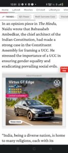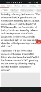 Above I have reproducing the screen shots of the entire Naidu article. This is for the section of Muslims toeing the line we do not know what the UCC draft is ? A line pushed by chanakya’ s of hindutva like Kapil Sibbal & copied by paid Muslim organisations & individuals on social media saying UCC is not a Muslim problem & hence why should Muslims be active in its opposition.This is the same narrative that Rascals gave before SC verdict on Babri Masjid that we will accept SC verdict….etc…robbing the 35cr Muslims of their right to demonstrate in a democracy the same is being done on UCC.
