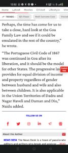 The candid addmission by Senior BJP leader Venkaiah Naidu former VP of India that the govt.wants the Portugese personal law all over India is hilarious as Modi PM had other day said one family cannot have two laws but here the entire country is to get foreign law of crusaders aimed to finish Islamic shariat the Quranic laws in civil matters.