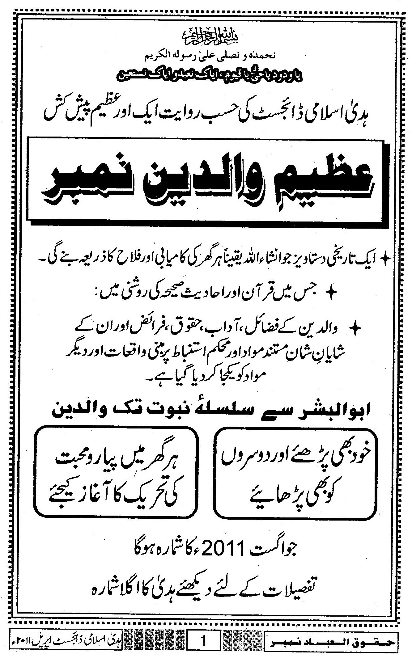 Huda Islamic Digest April 2011 – Special Issue on Huququl Ebaad Rabi us Sani Jamadi ul Awwal 1432 Hijri