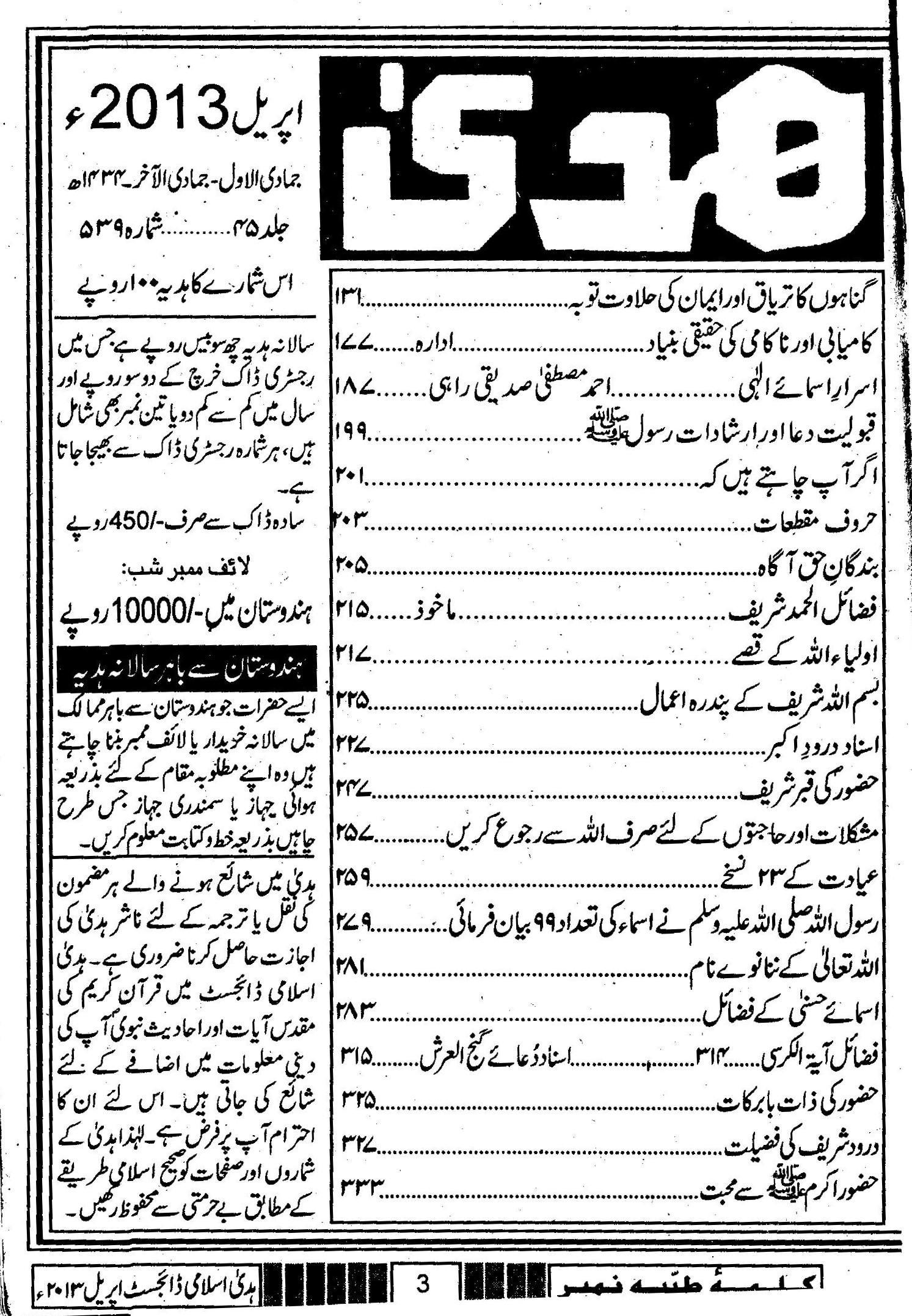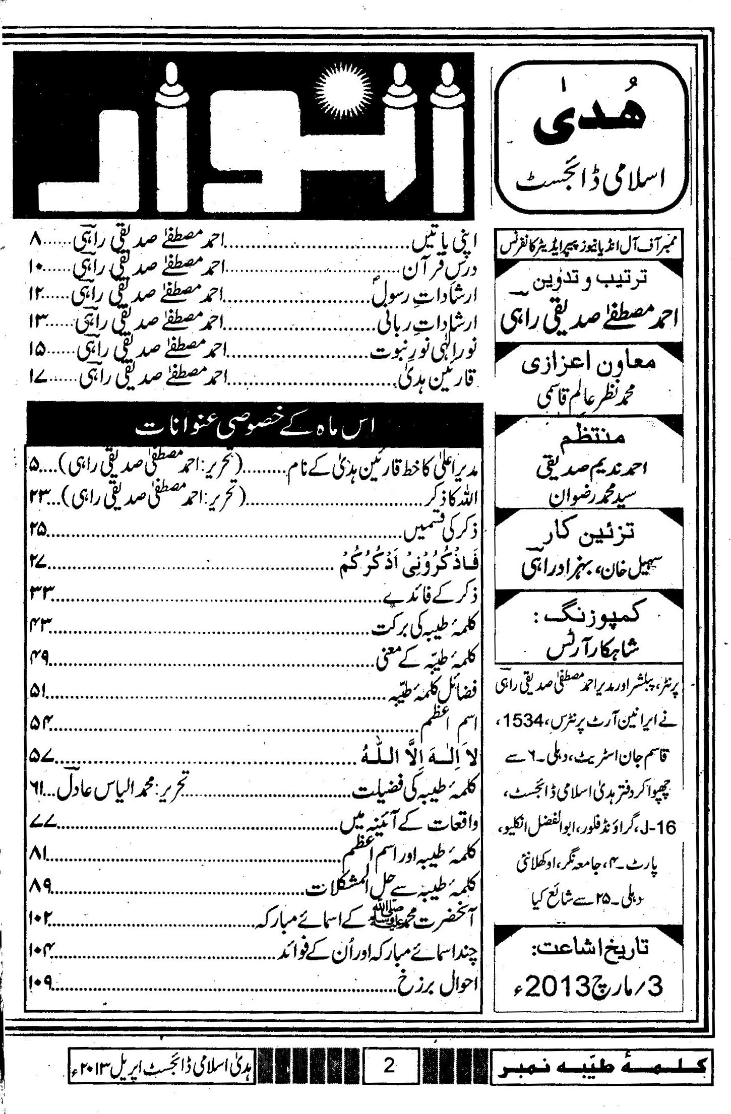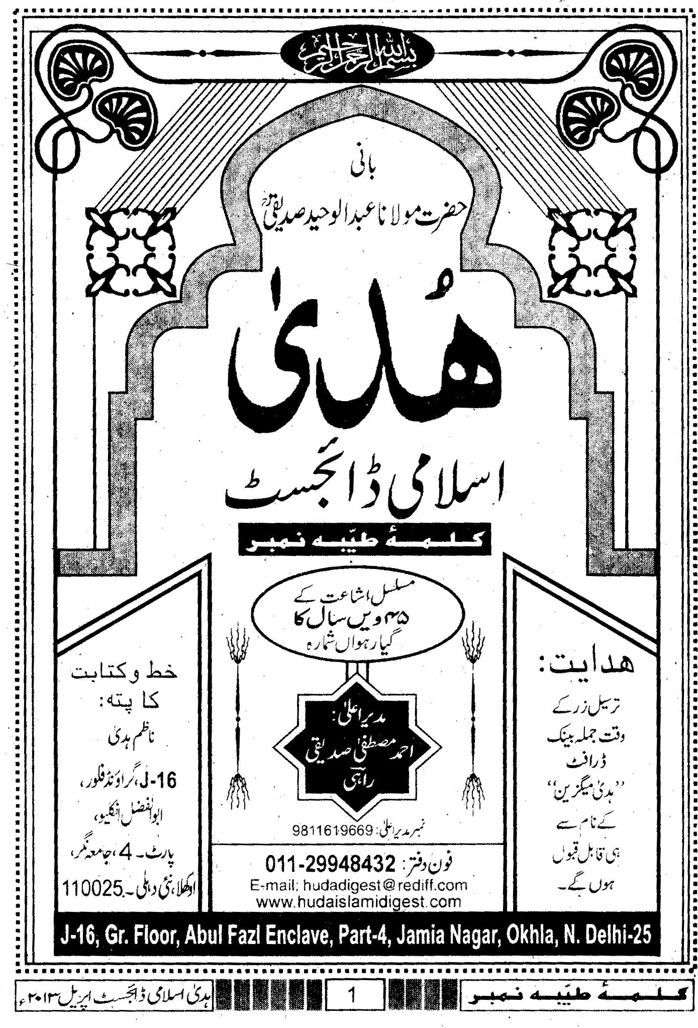 Huda Islamic Digest : April 2013 – Special Issue on Kalma e Taiyyaba Number – Jamadiul Awwal / Jamadiul Aakhir – 1434 Hijri.
