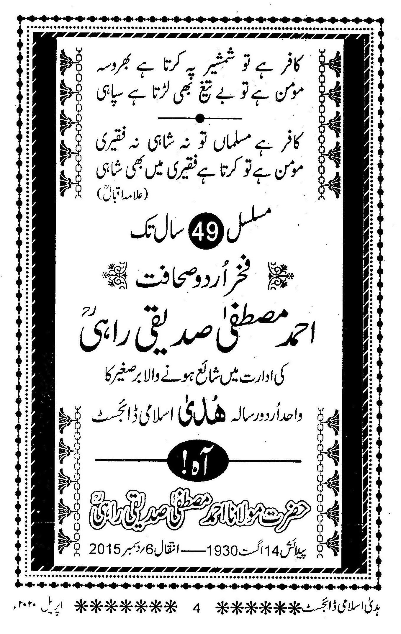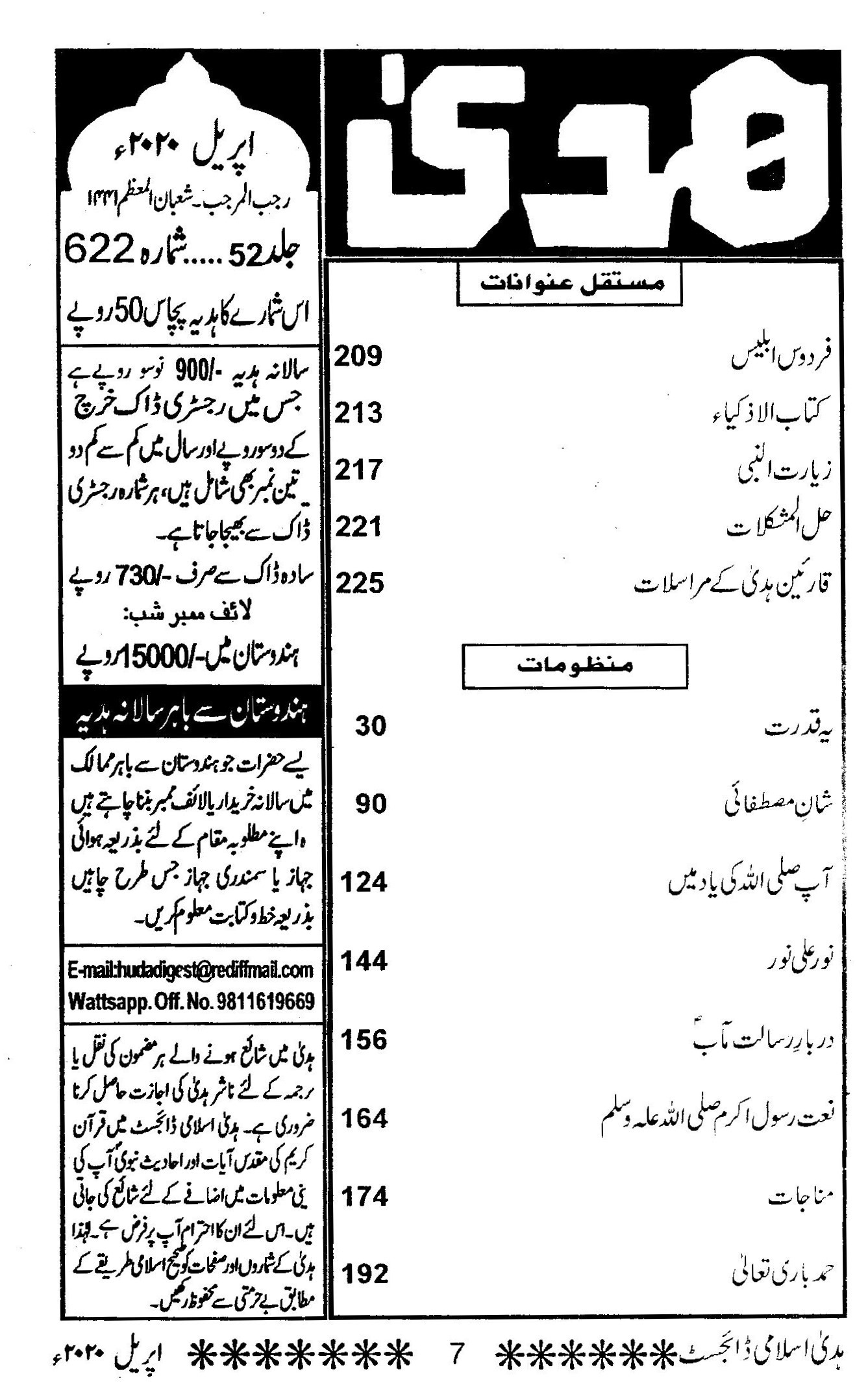 Huda Islamic Digest April 2020 – RajabShabaan – 1441 Hijri