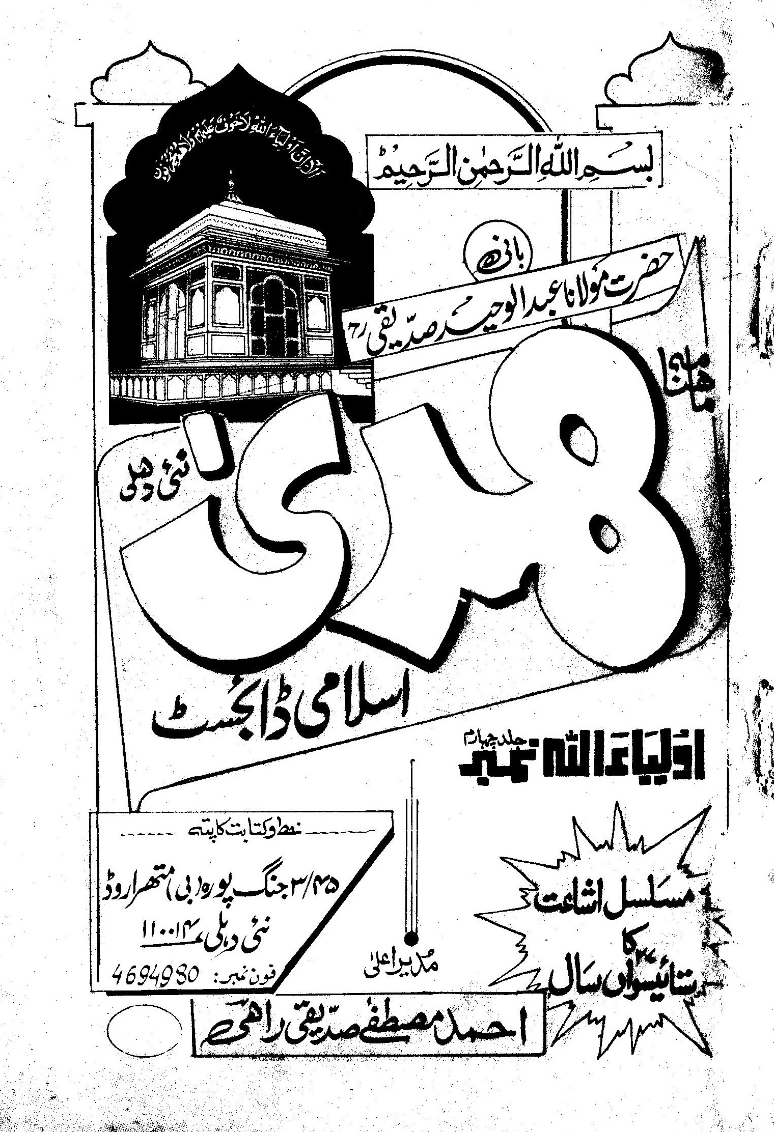 Huda Islamic Digest : August 1994 Special issue on Aulia Allah Series – Part 4 : Safar ul Muzaffar / Rabiul Awwal : 1415 Hijri.