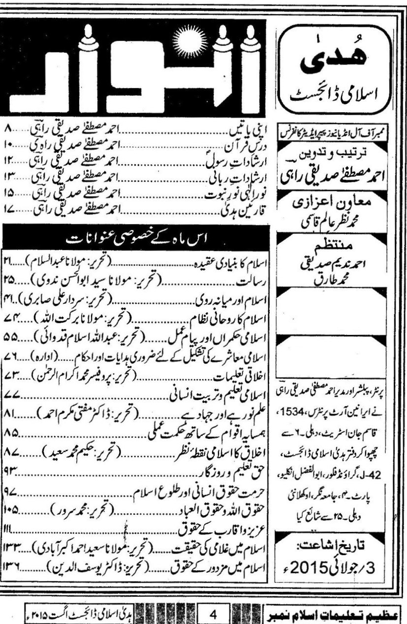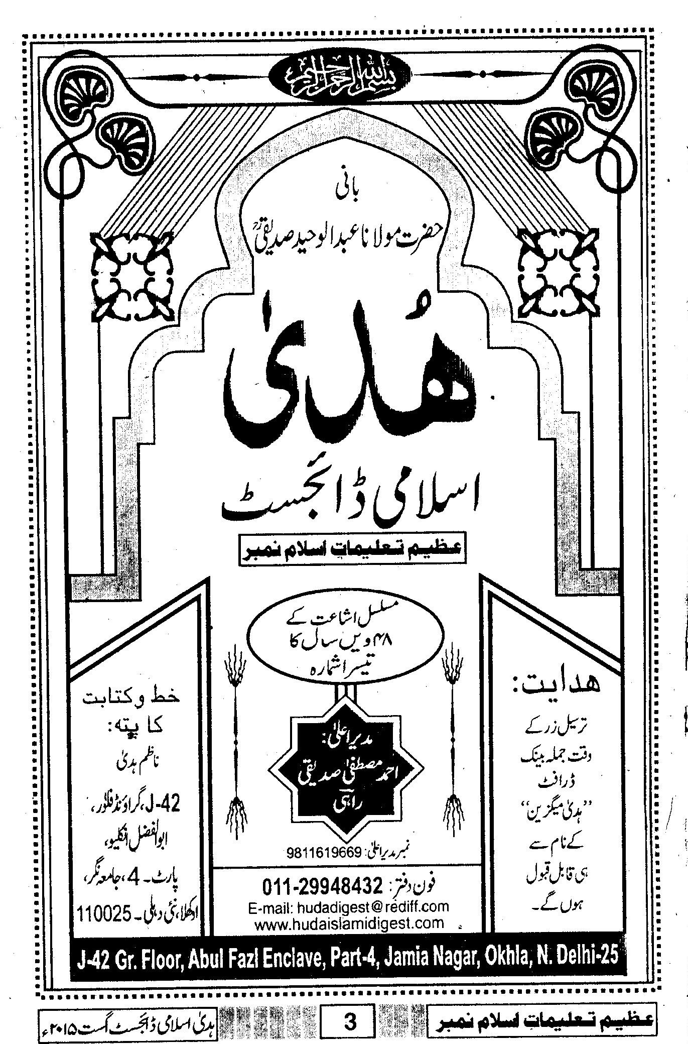 Huda Islamic Digest : August 2015 – Special Issue – Azeem Talimaat E Islam No: – Shawwal ul Mukarram / Ziqada : 1436 Hijri.