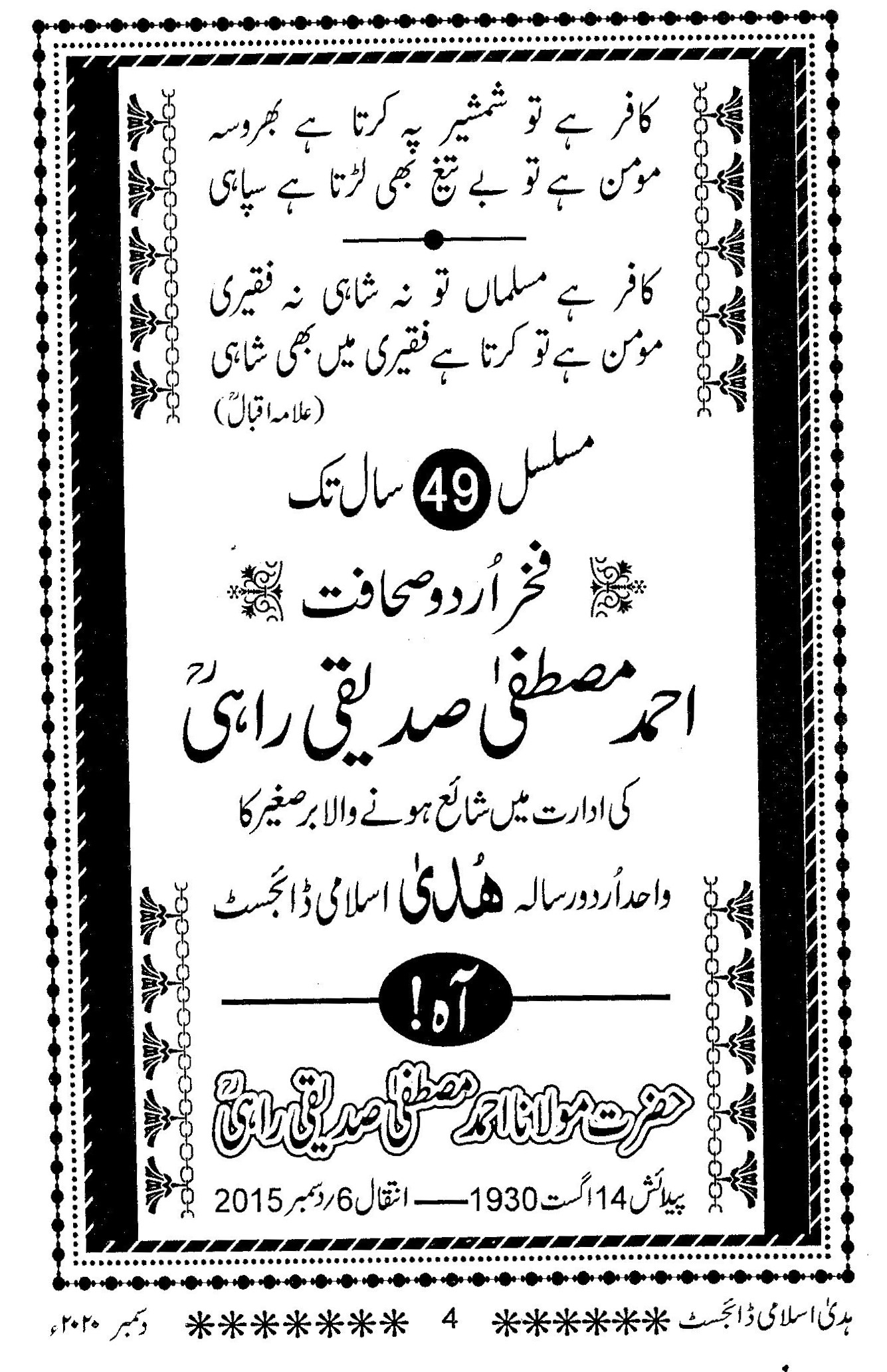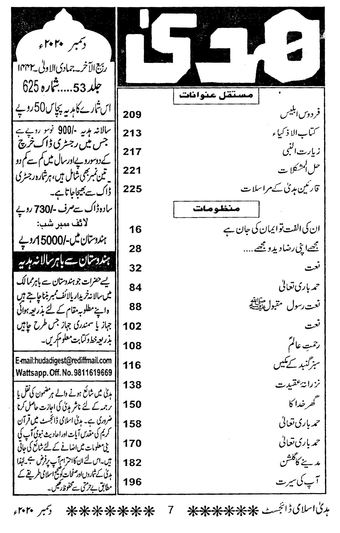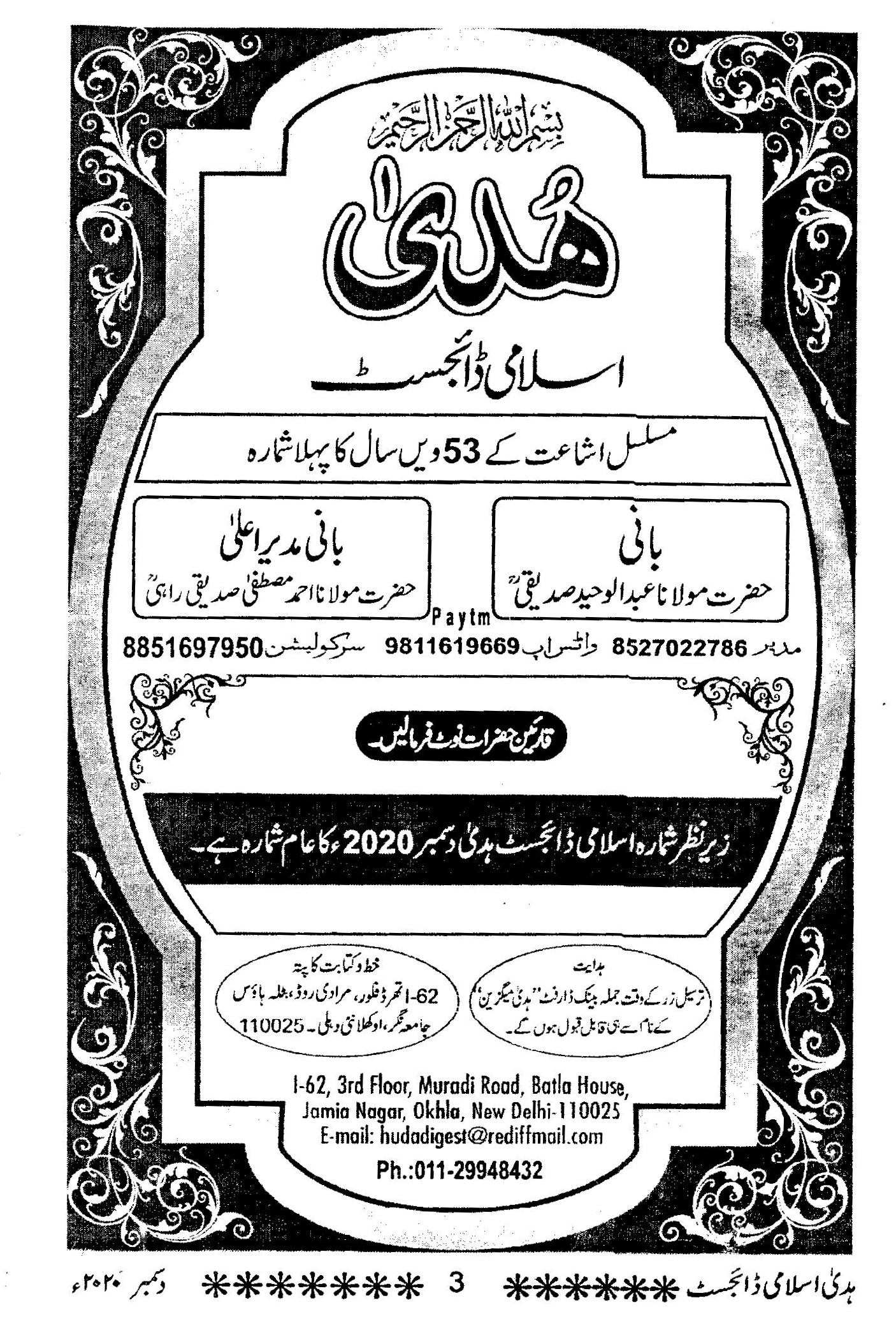 Huda Islamic Digest : December 2020 – Rabiul Aakhir – Jamadi ul Ula – 1442 Hijri