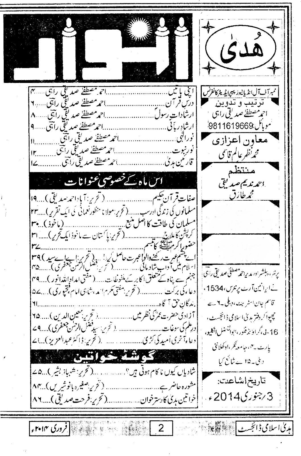 Huda Islamic Digest : February 2014 – 1435 Hijri – Rabiul Awwal / Rabiul Aakhir