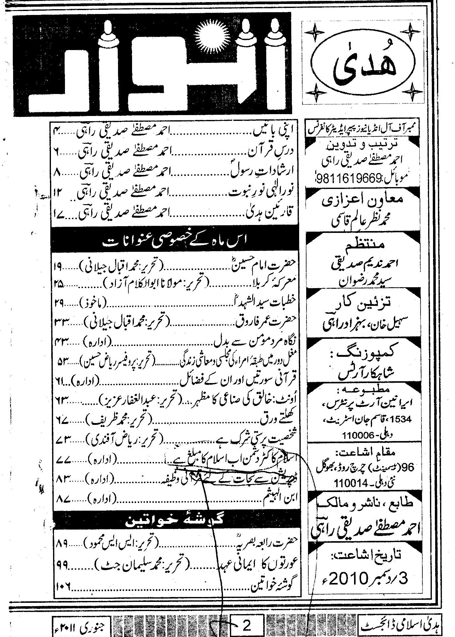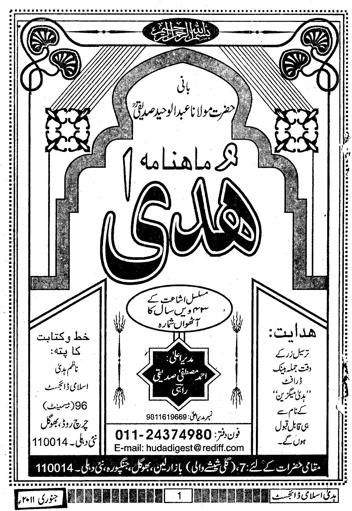 Huda Islamic Digest : January 2011 – Moharram ul Haram / Safar ul Muzaffar – 1432 Hijri
