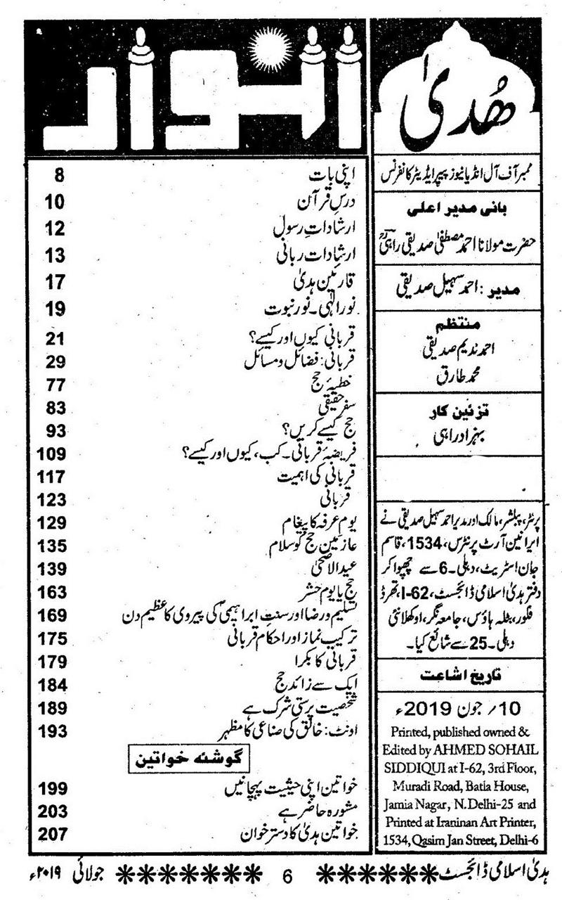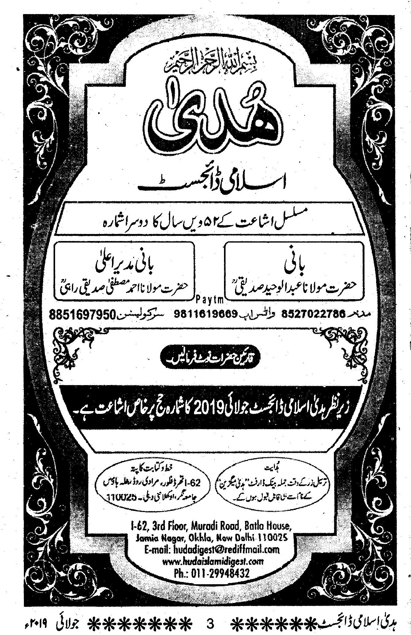 Huda Islamic Digest July 2019 – Special on Hajj & Qurbani – Shawwalul Mukarram Ziqaad 1440 Hijri