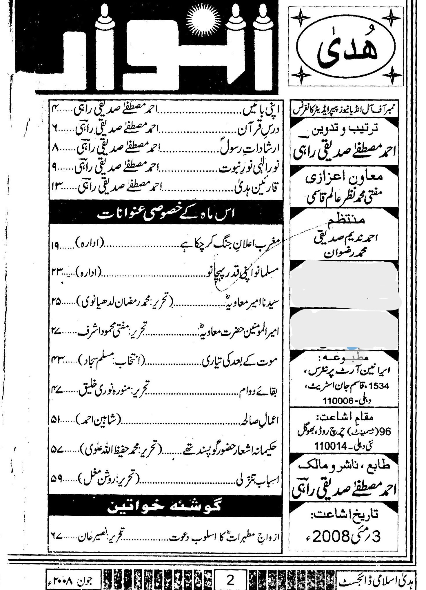 Huda Islamic Digest June 2008 – Jamadi ul Awwal Jamadi ul Aakhir 1429 Hijri