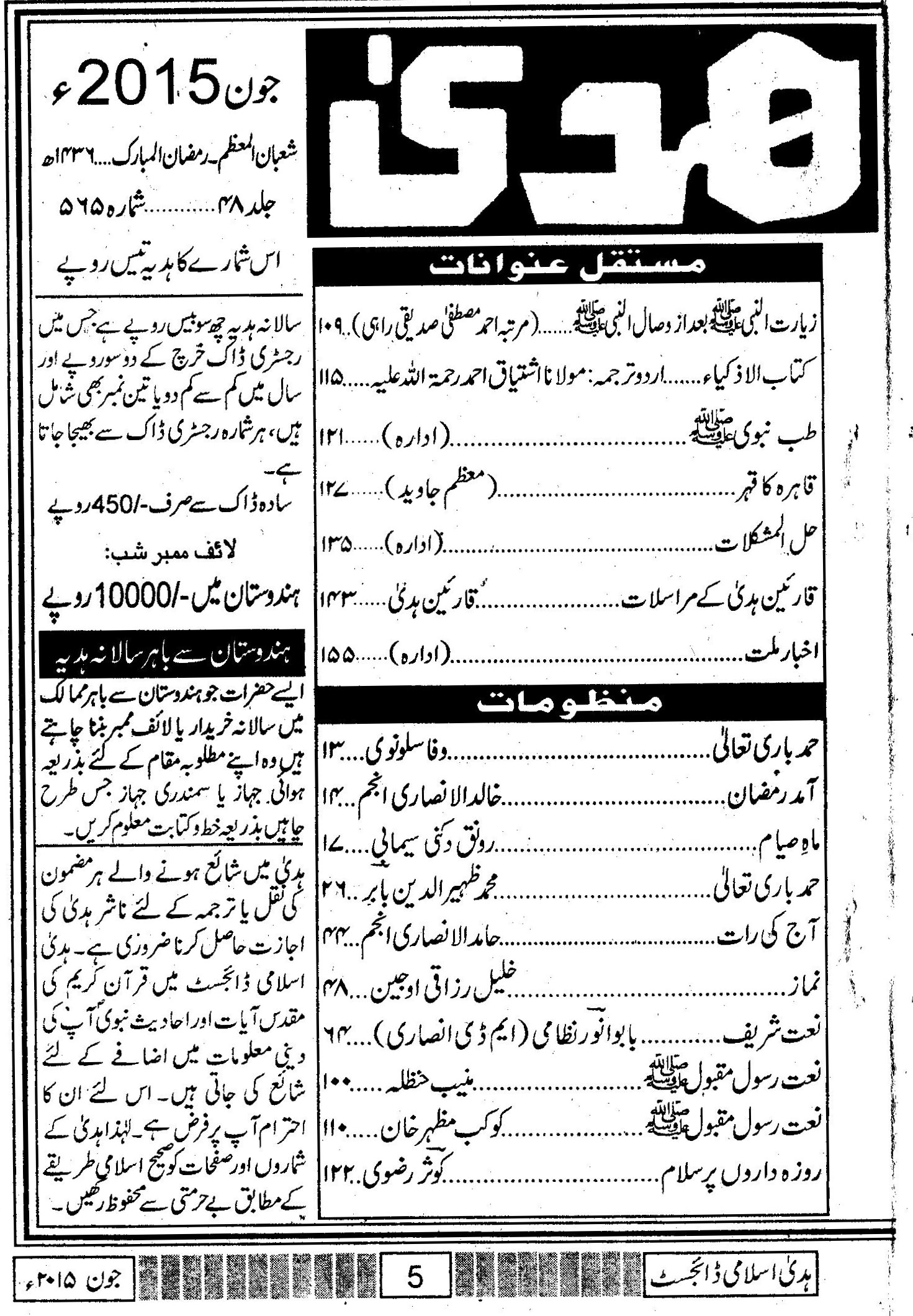 Huda Islamic Digest : June 2015 : Shabaan / Ramzaan – 1436 Hijri