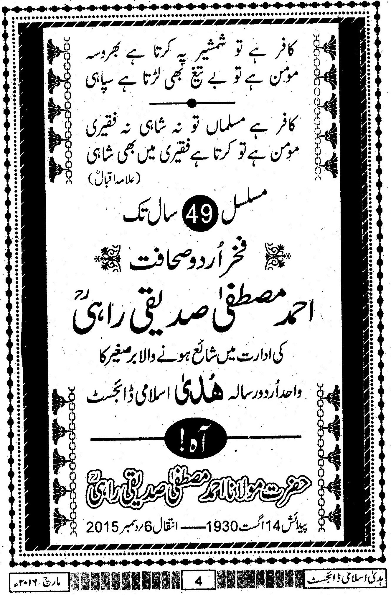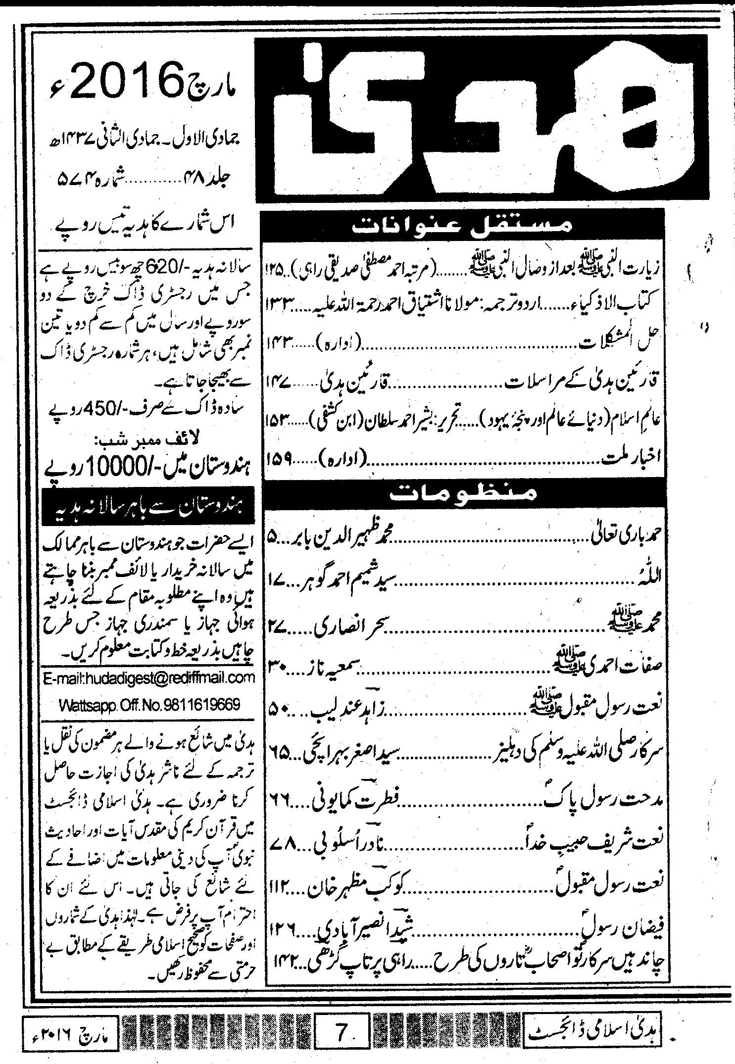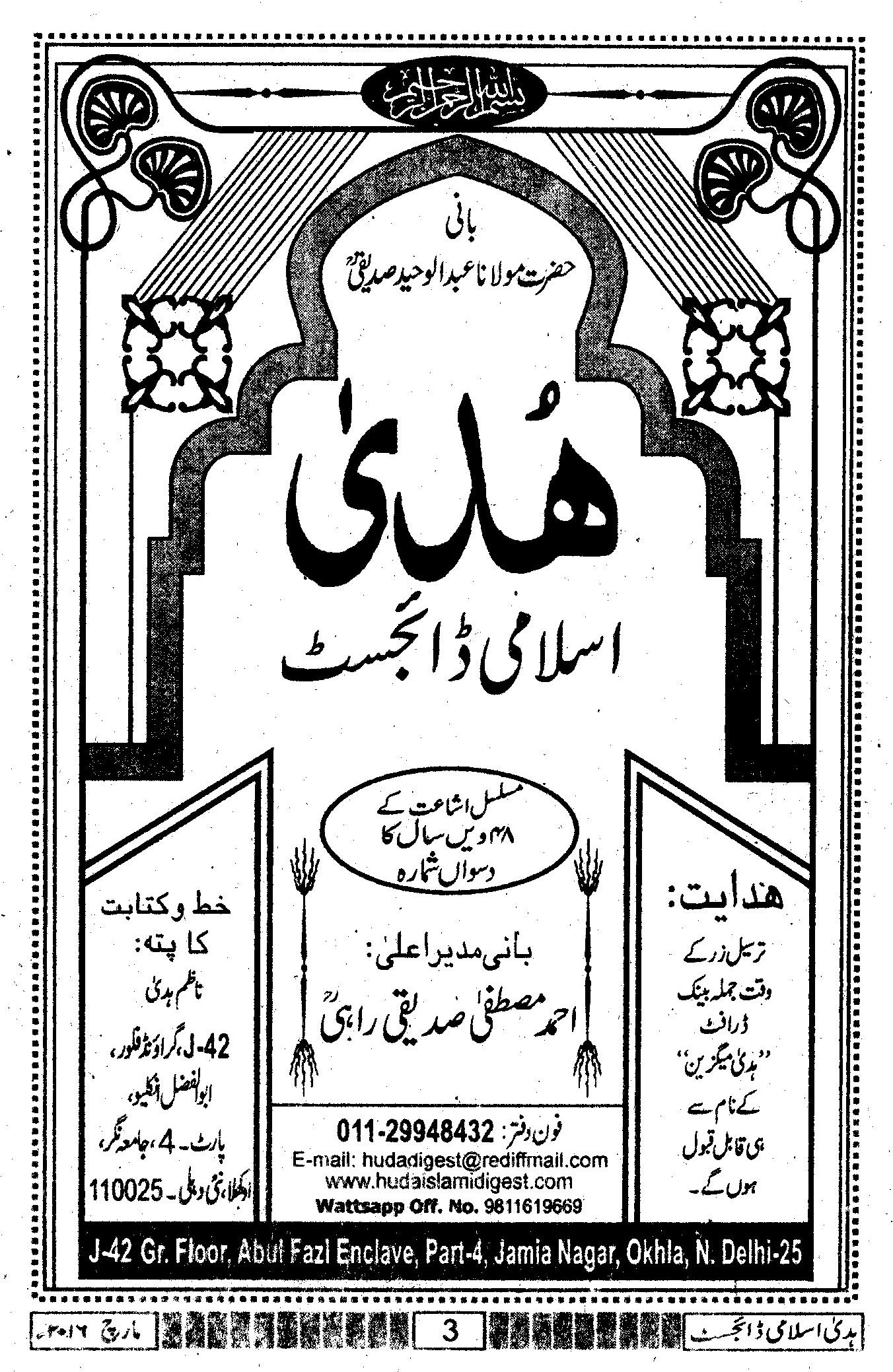 Huda Islamic Digest : Match 2016 – Jamadi ul Awwal / Jamadi ul Sani – 1437 Hijri.