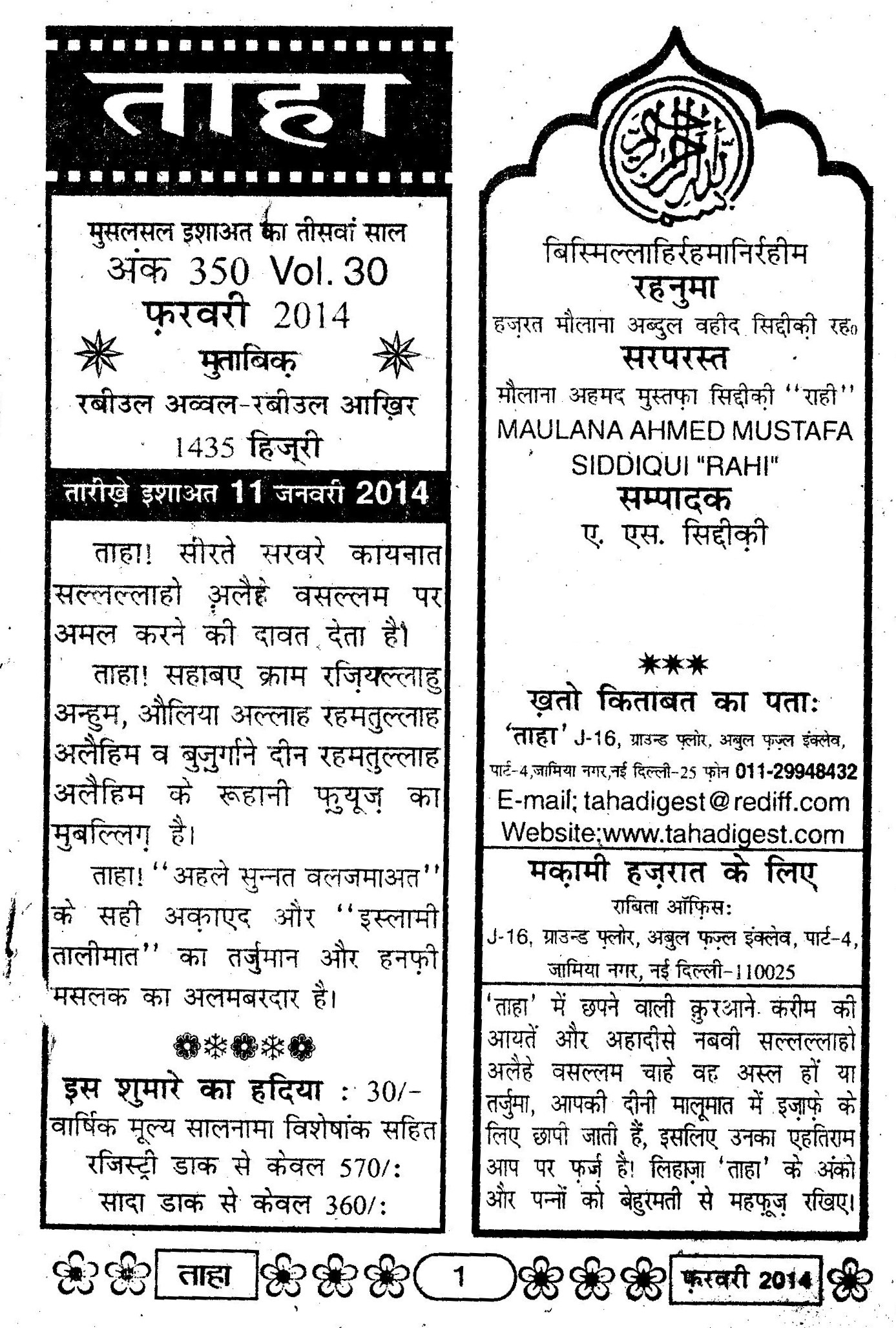 Taha Islamic Digest : February 2014 – Rabiul ul Awwal / Rabbi ul Aakhir – 1435 Hijri