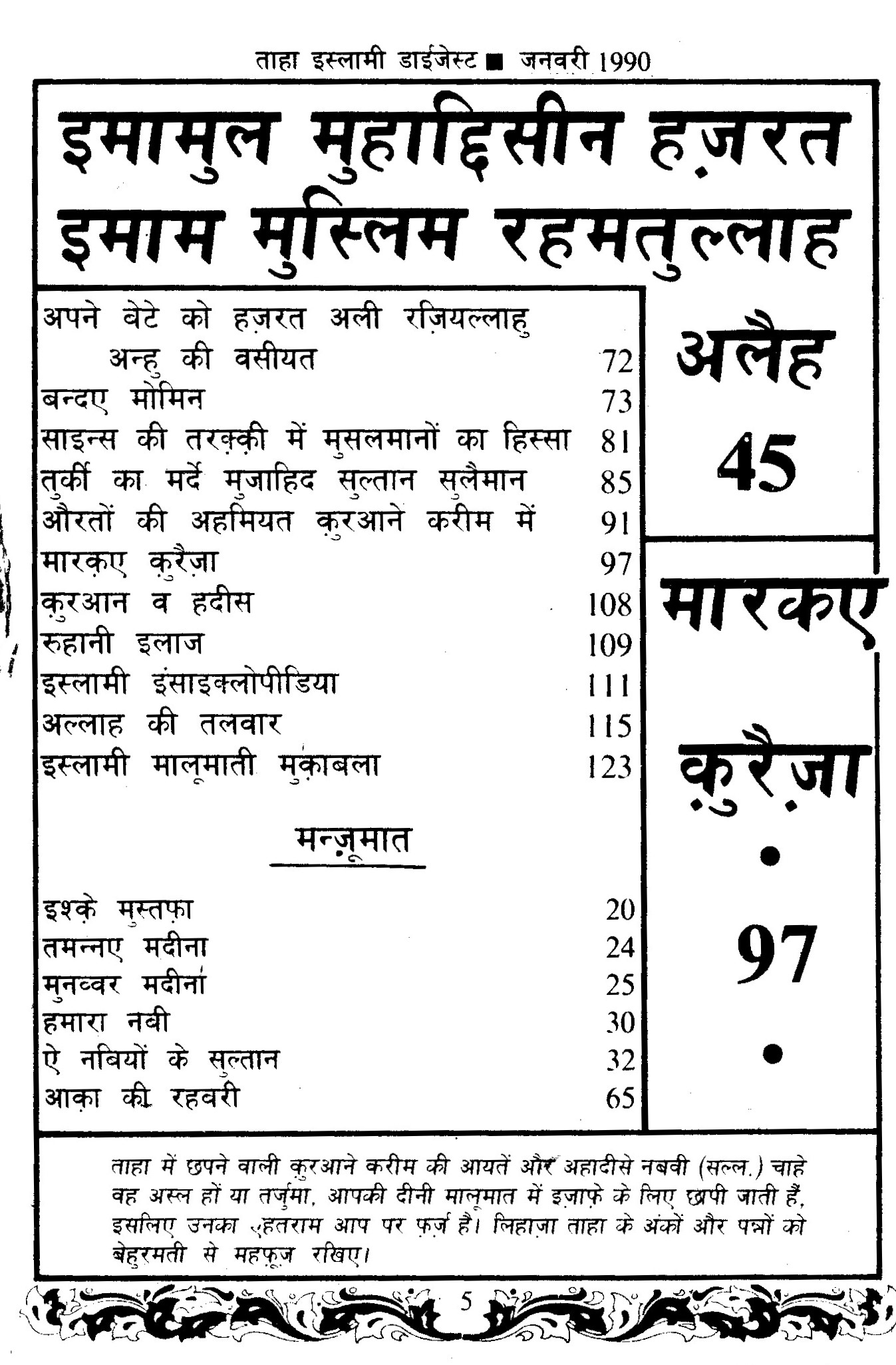 Taha Islamic Digest : Jan 1990 – Jamadi Ussani – 1410 Hijri.