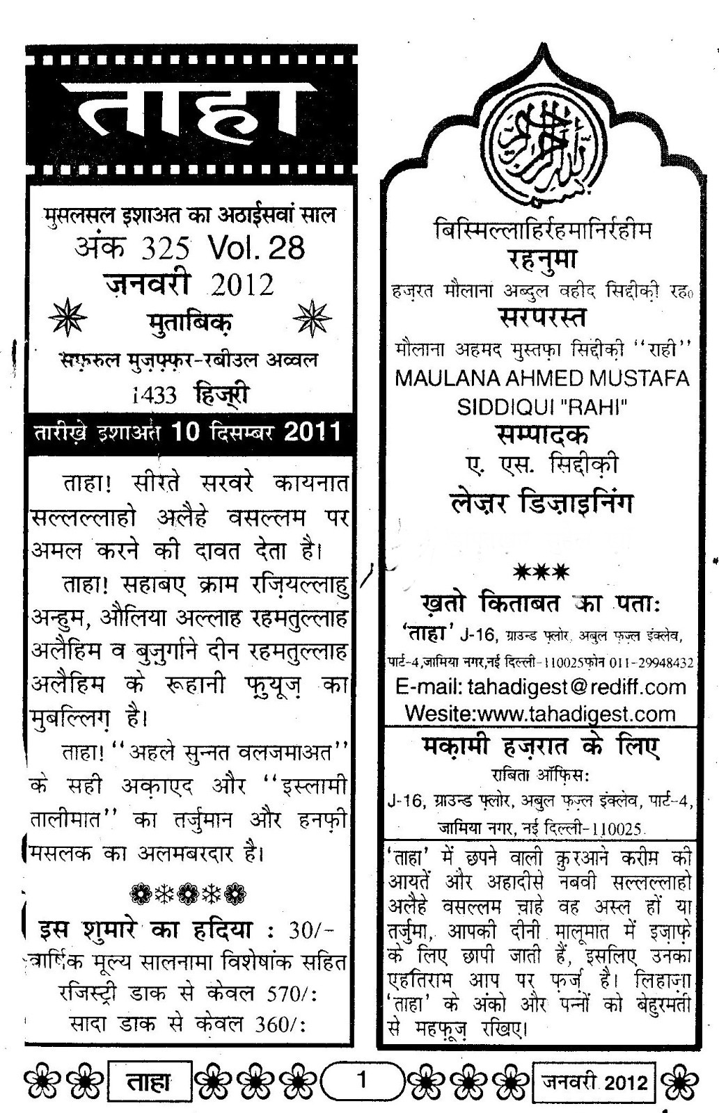 Taha Islamic Digest : January 2012 – Safarul Muzaffar / Rabiul Awwal – 1433 Hijri.