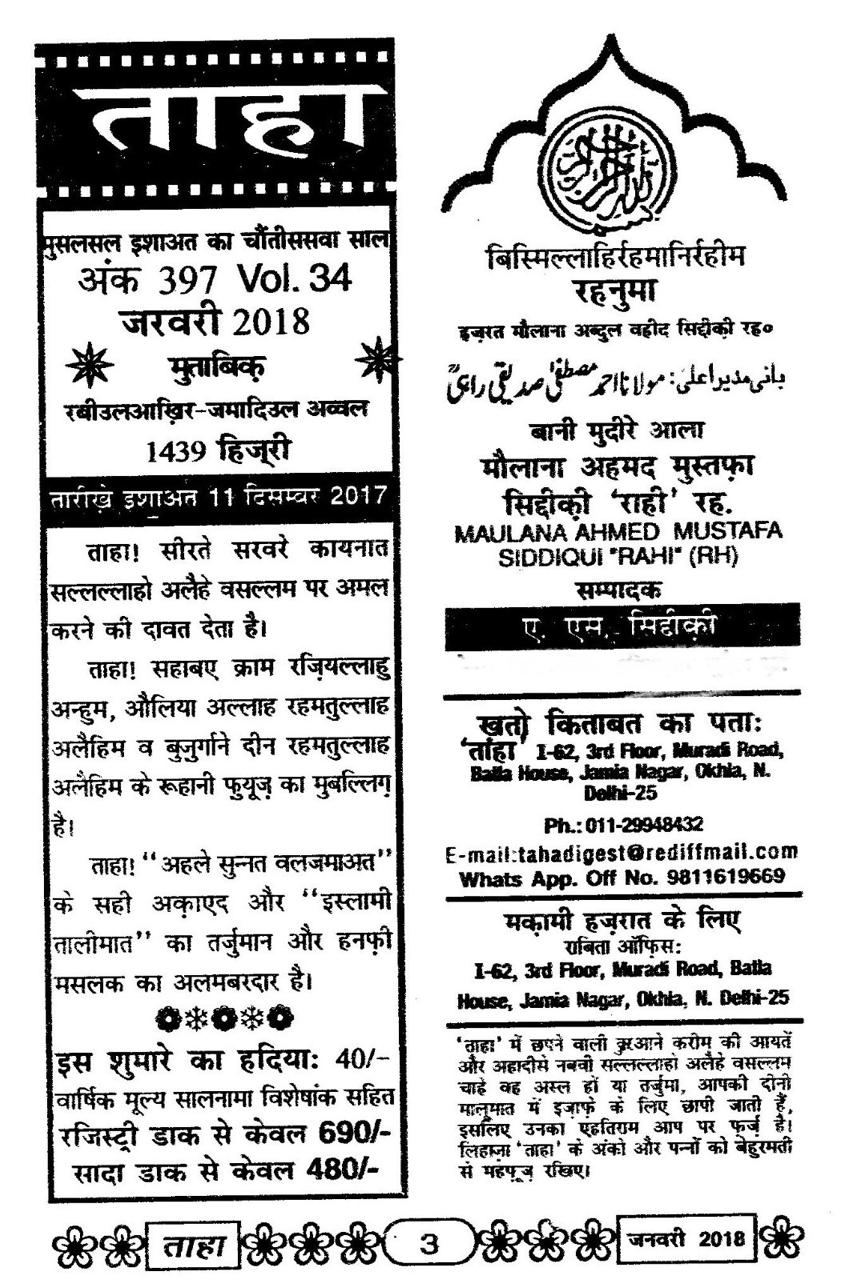 Taha Islamic Digest : January 2018 – Rabi ul Aakhir – Jamadi ul Awwal – 1439 Hijri