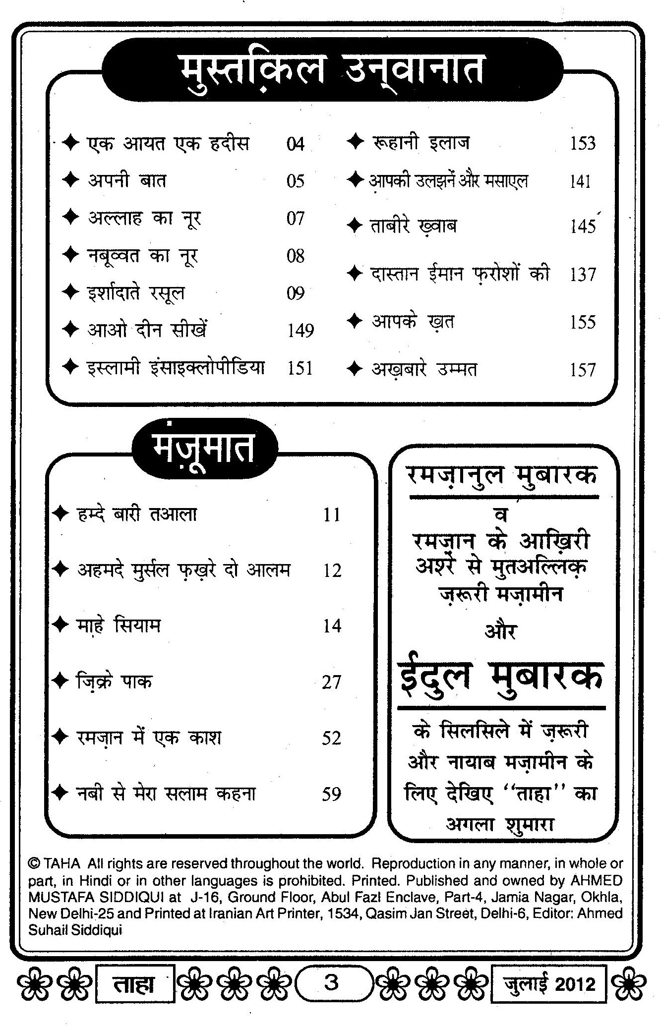 Taha Islamic Digest : July 2012 – Ramzaan Special. Shaban ul Moazzam / Ramzan ul Mubarak – 1433 Hijri