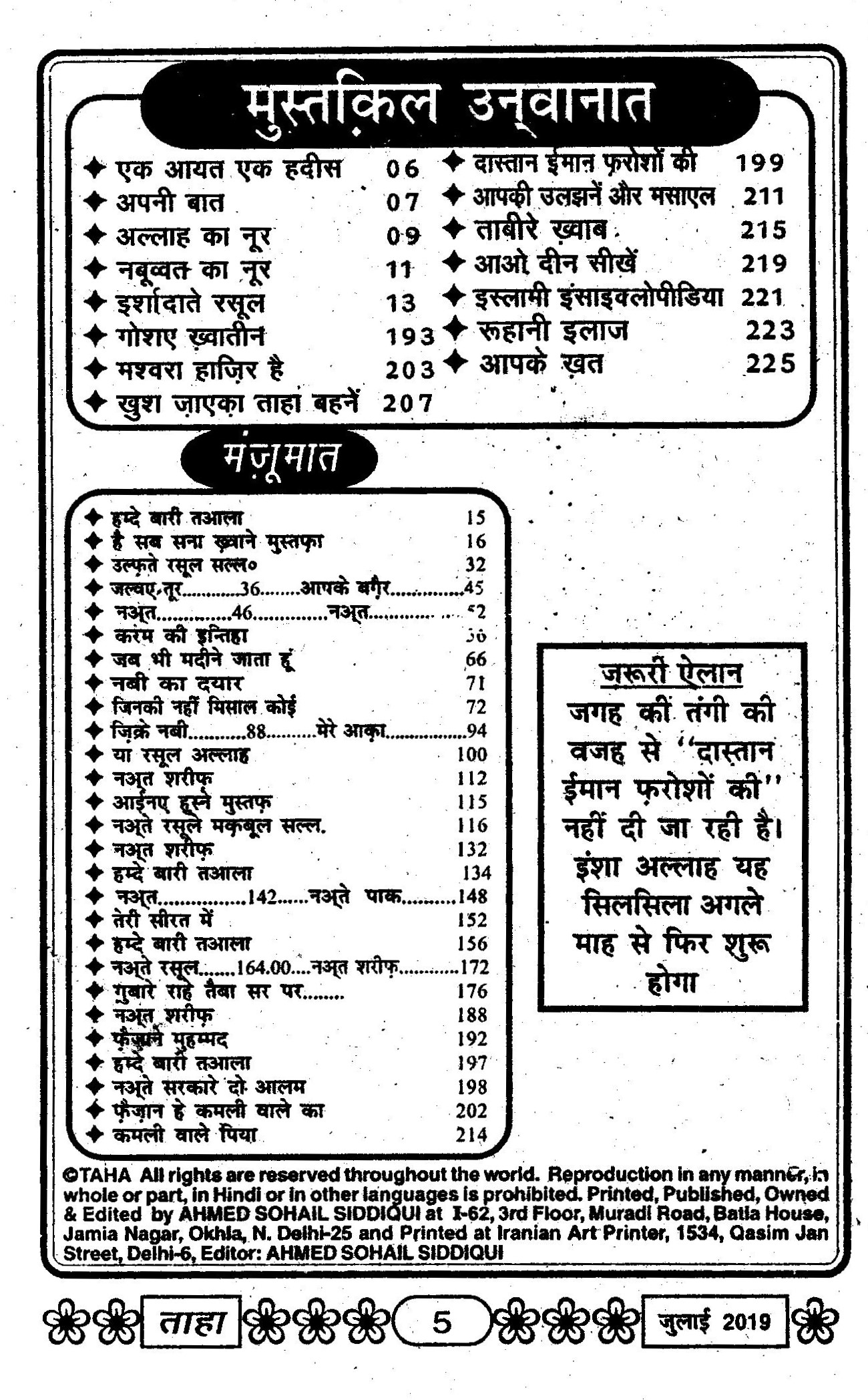 Taha Islamic Digest : July 2019 – Shawwal lul Mukarram / Ziqadah : 1440 Hijri