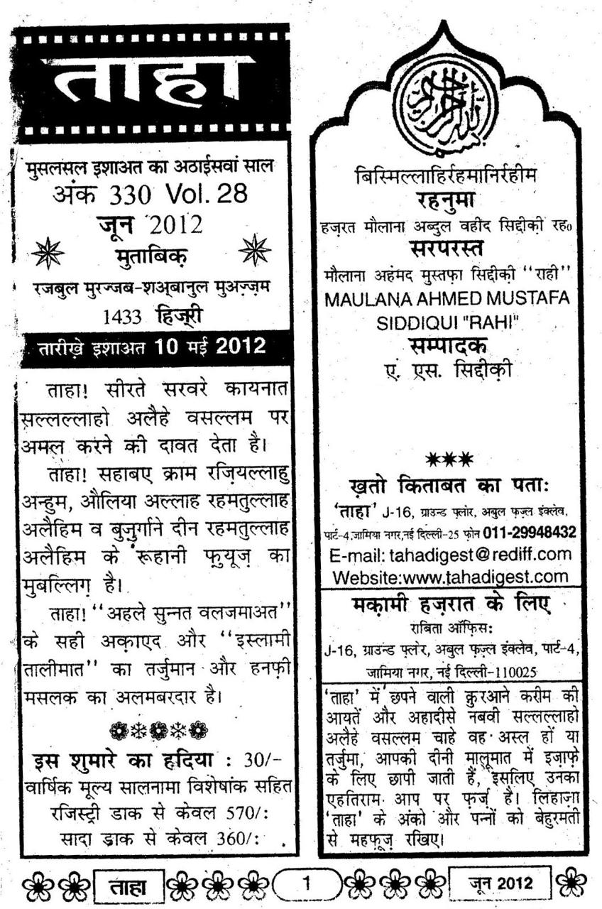 Taha Islamic Digest : June 2012 – Special Issue on Shabaey Baraat : Rajbul Murajjab / Shaban ul Muazzam – 1433 Hijri.