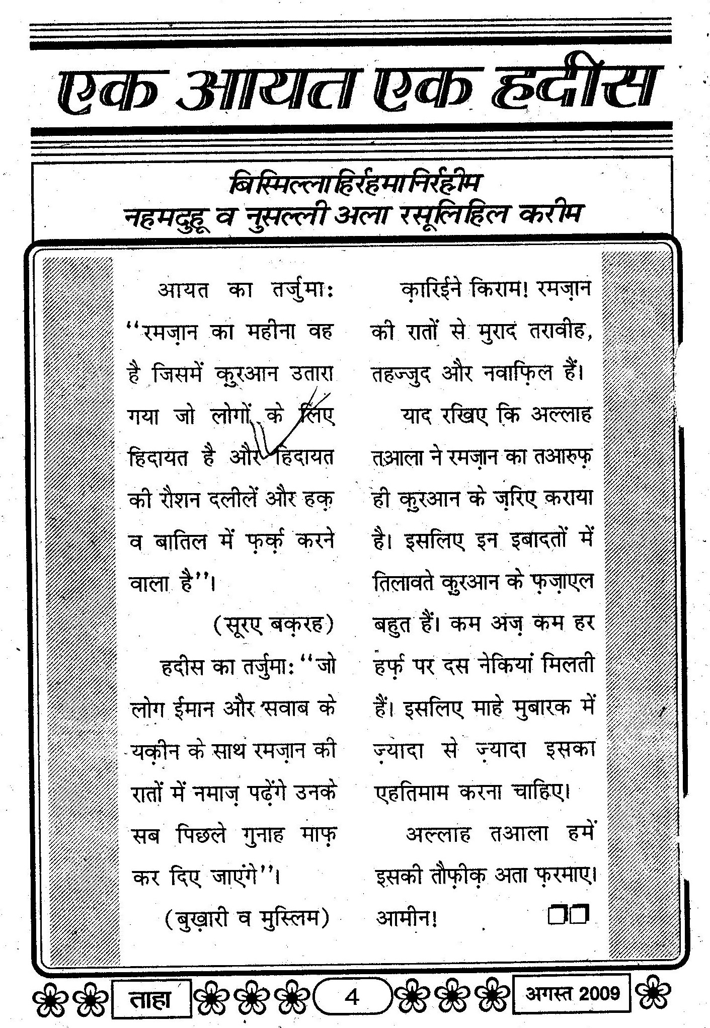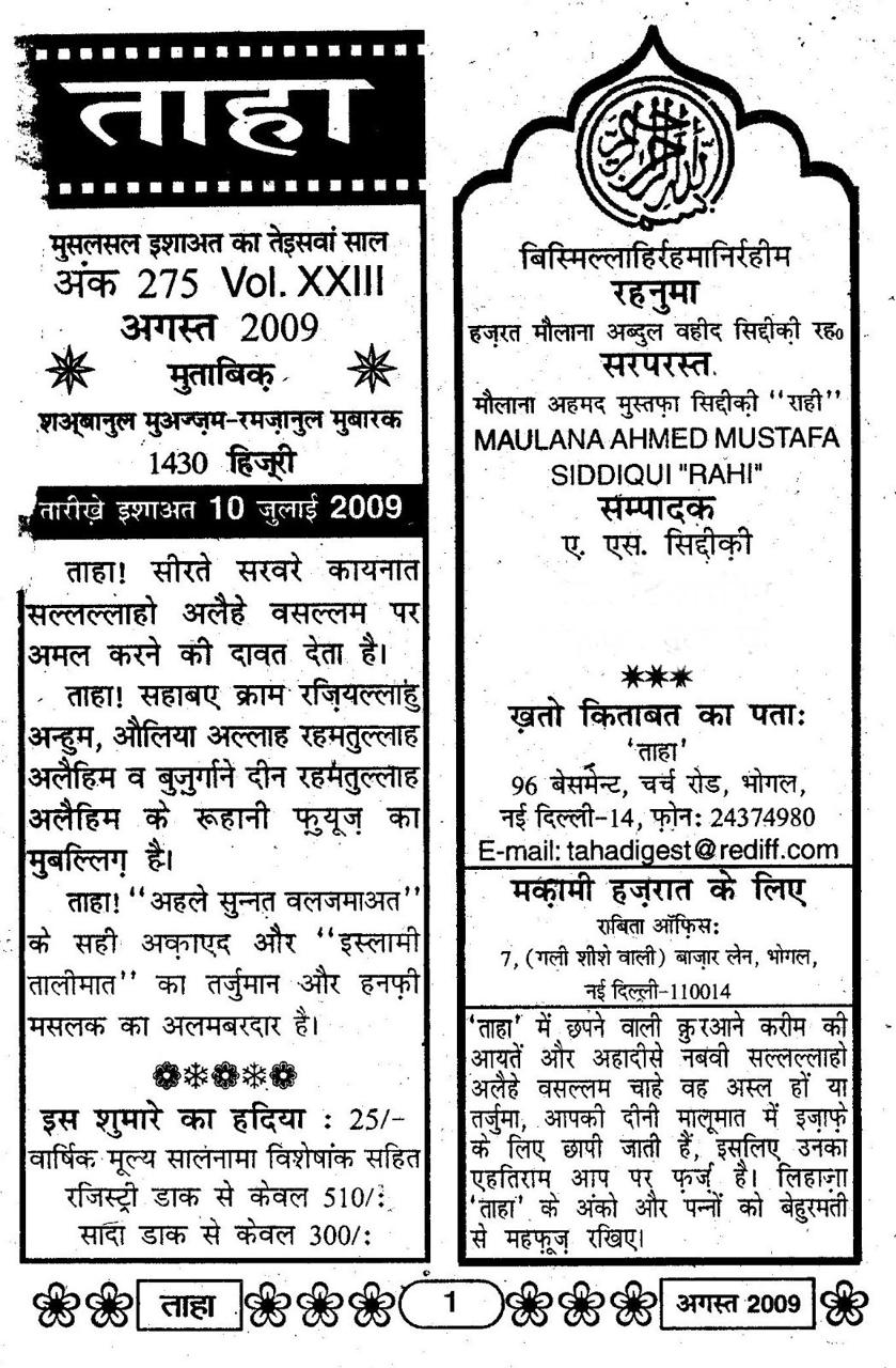 Taha Islamic Digest Naekiyoun ka Mahina – August 2009 – Shaban ul Moazzam Ramzan ul Mubarak 1430 Hijri