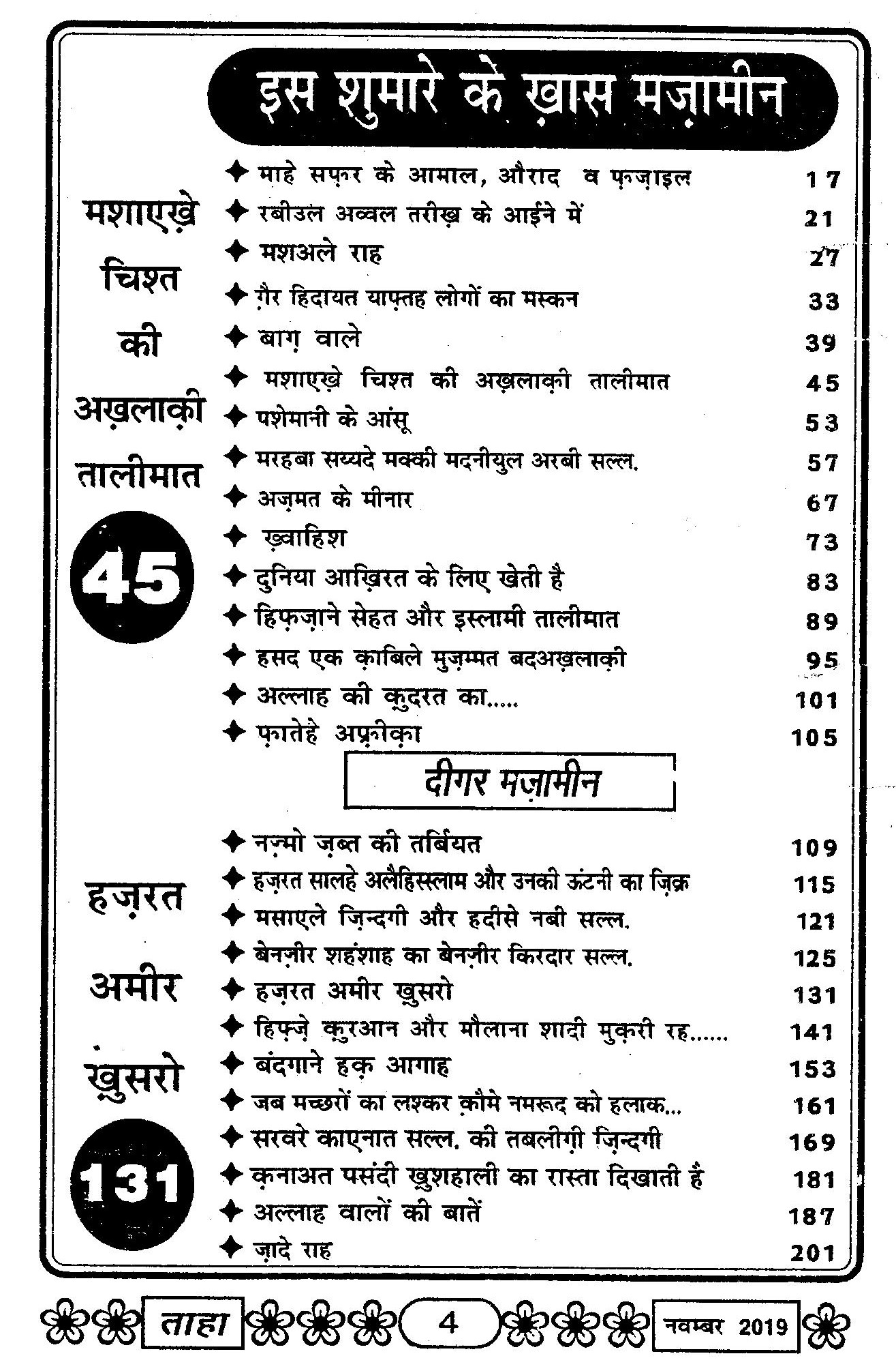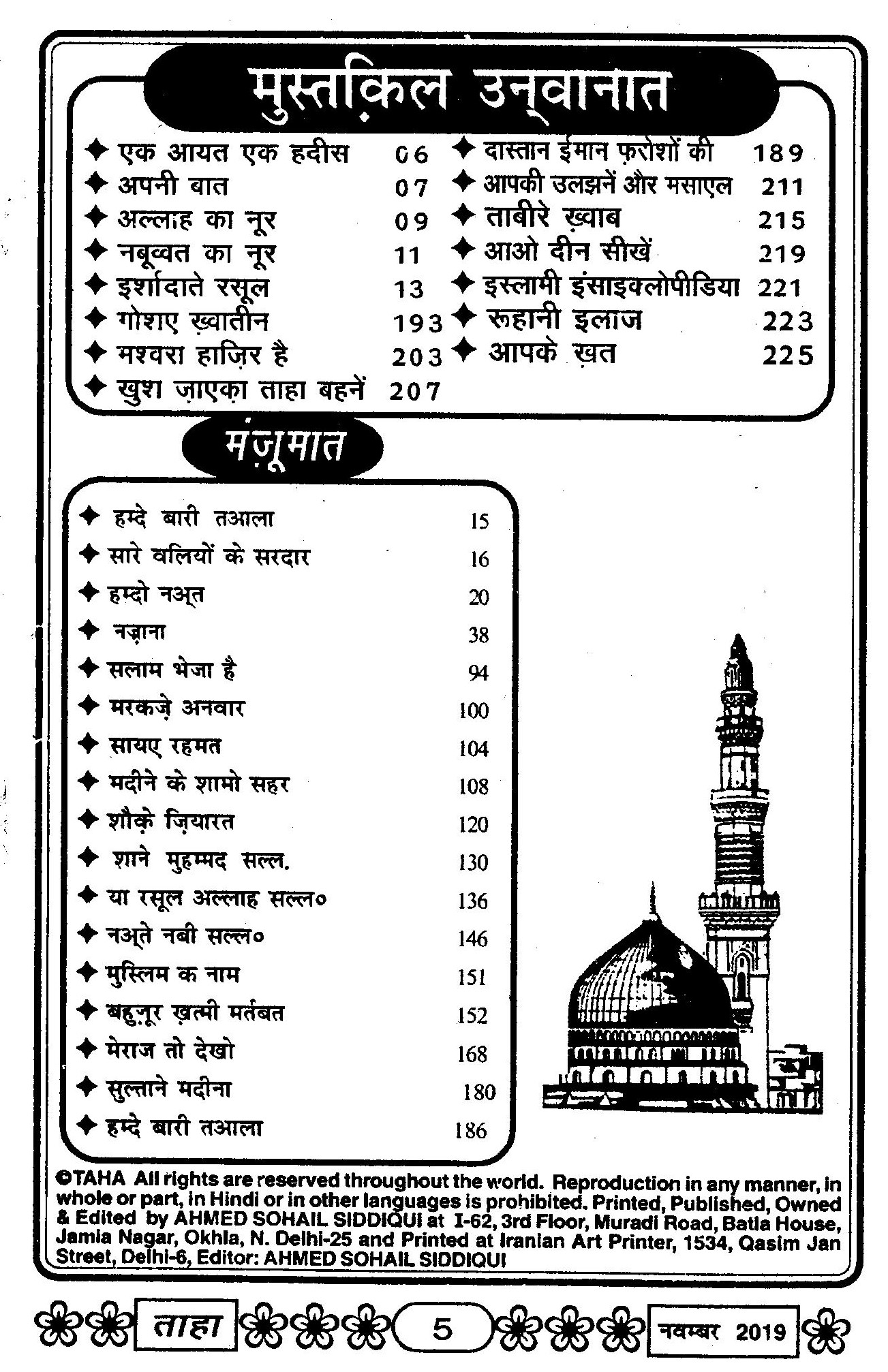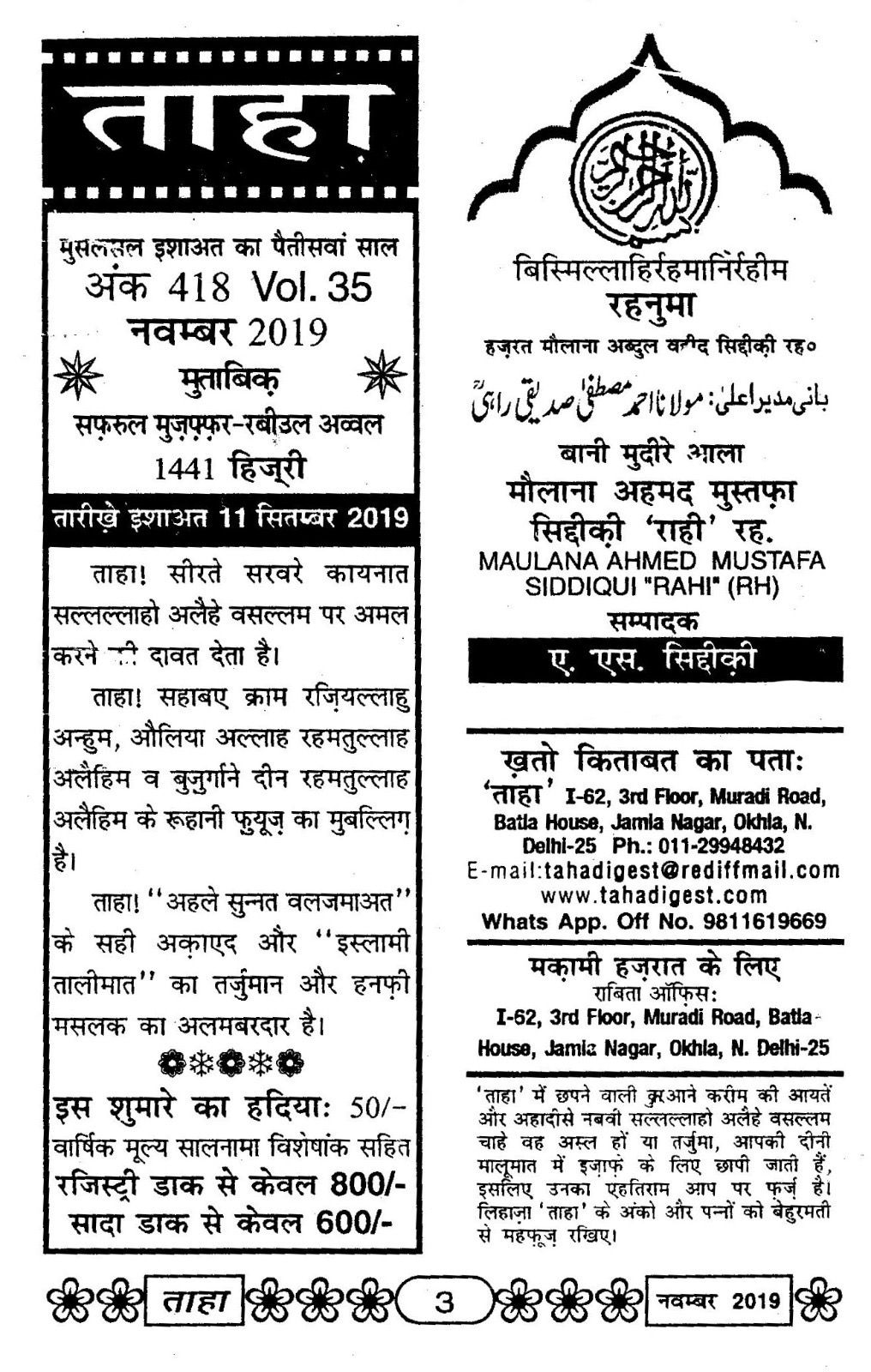Taha Islamic Digest : November 2019 – Safar ul Muzaffar / Rabiul Awwal : 1441