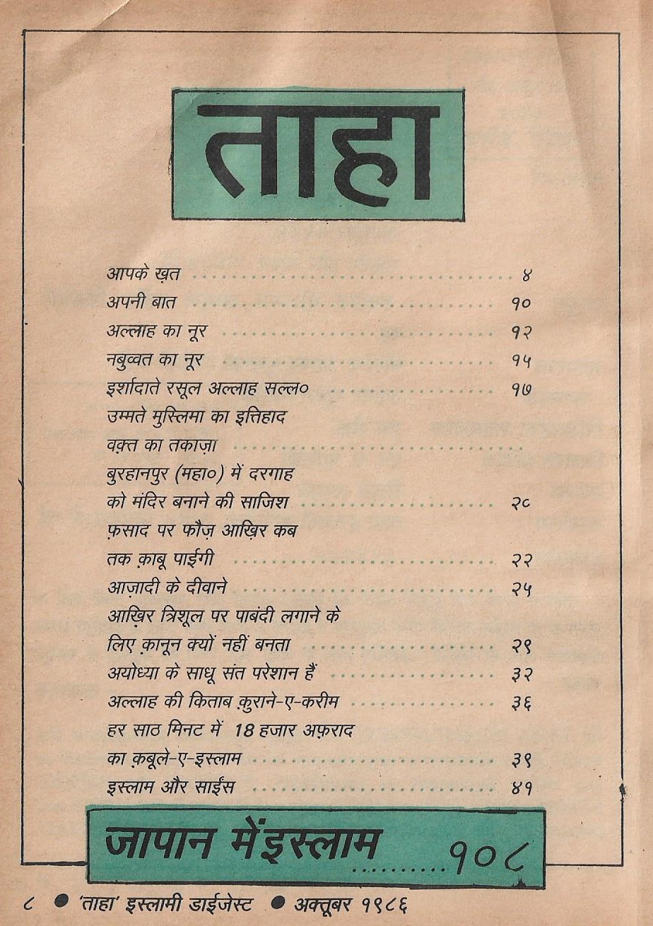 Taha Islamic Digest : October 1986 – Moharram/Safar : 1407 Hijri