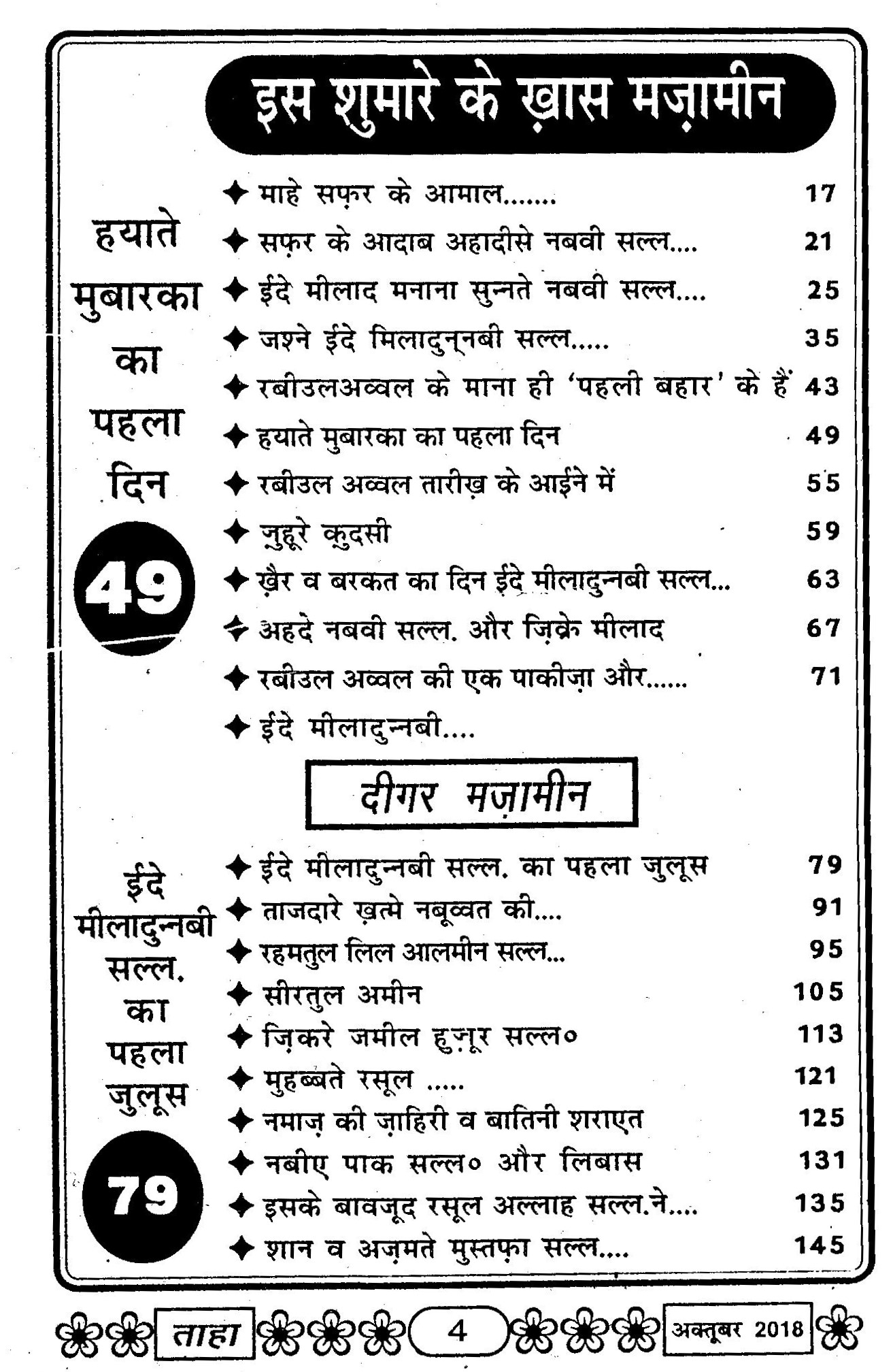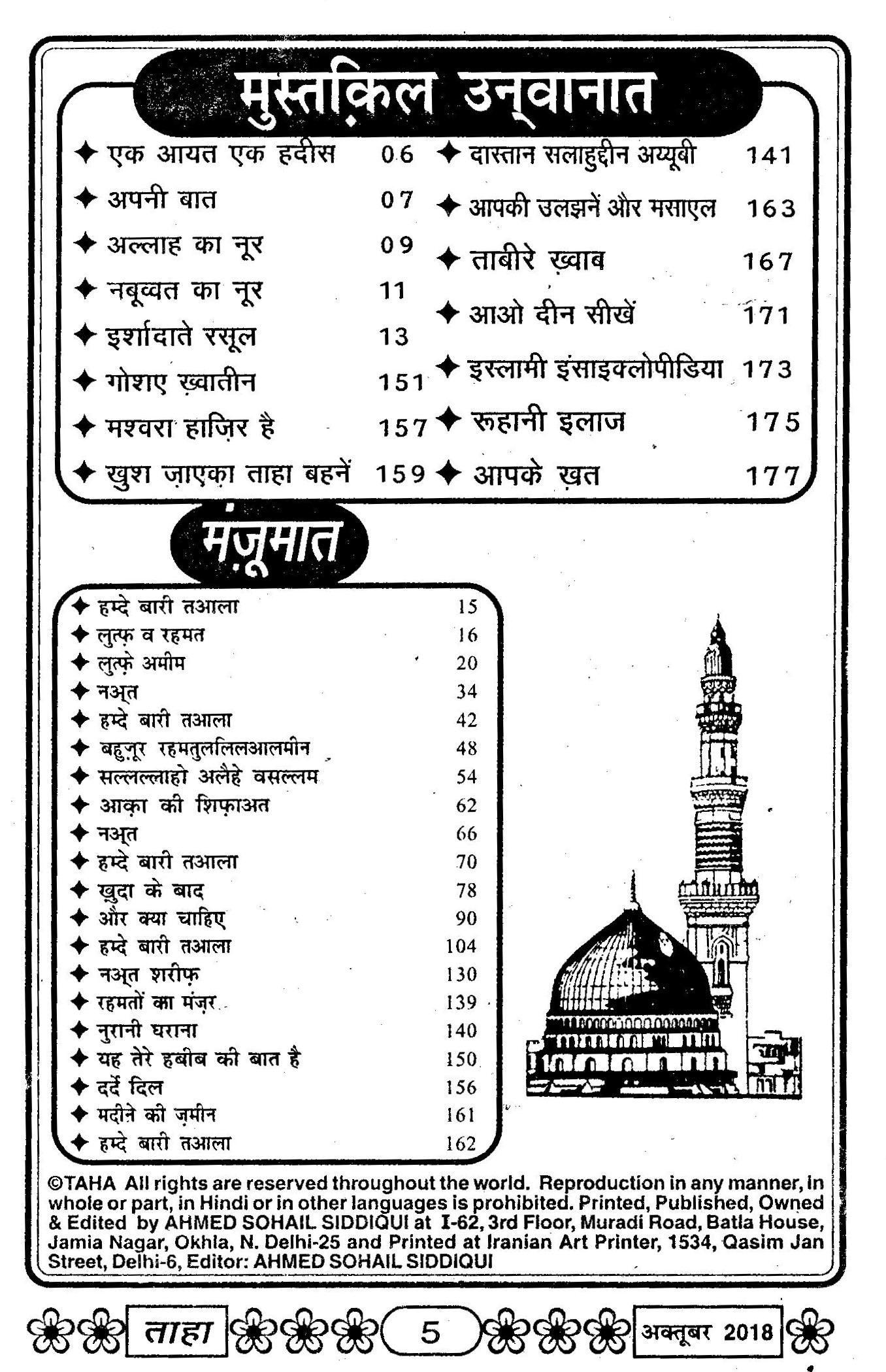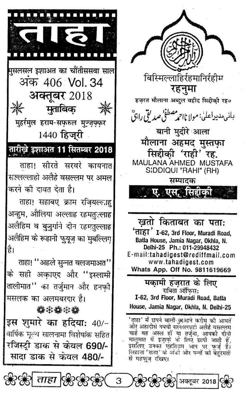 Taha Islamic Digest : October 2018 – Articles on Safar & EID e Milad un Nabi – Moharram – Safar : 1440 Hijri