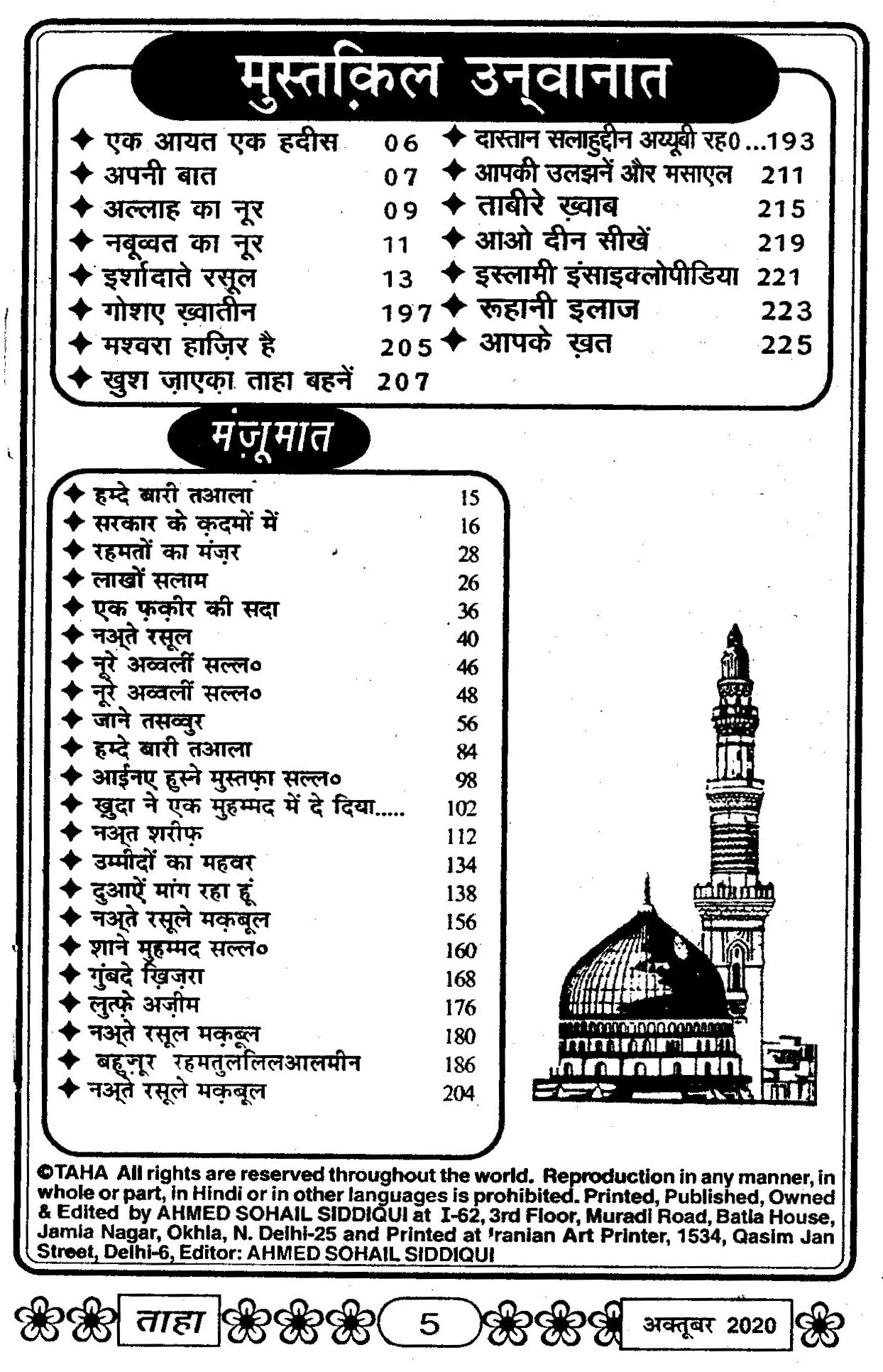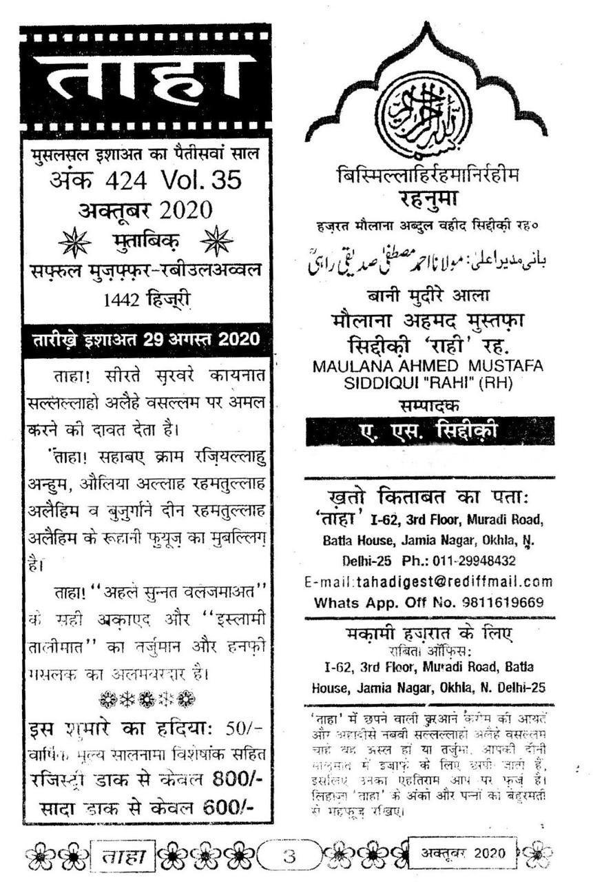 Taha Islamic Digest : October, 2020 – Safar ul Muzaffar / Rabi ul Awwal – 1442 Hijri.