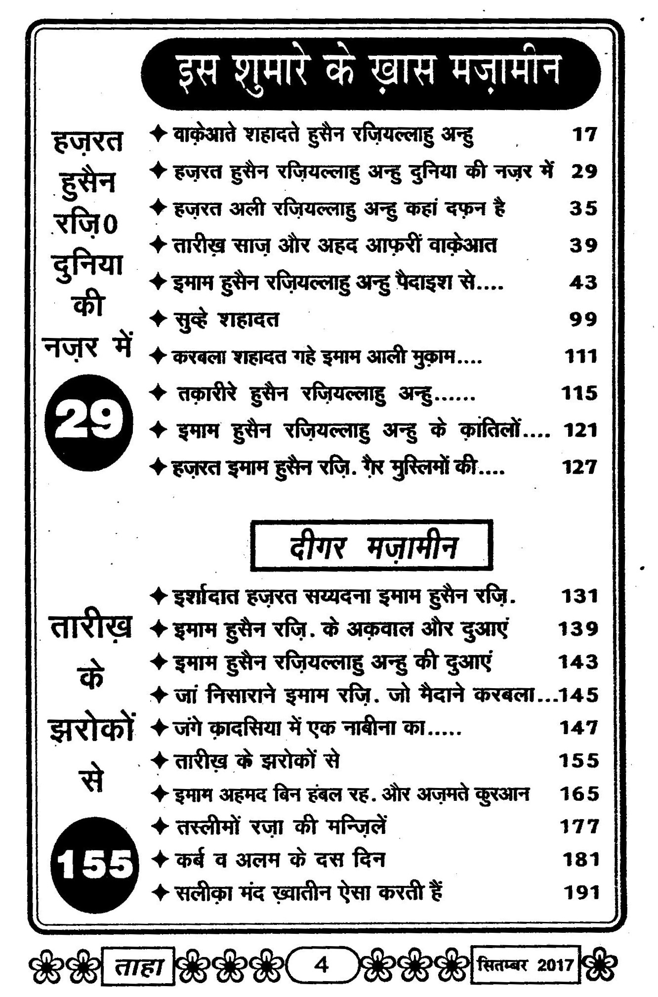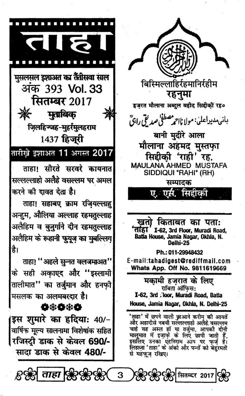 Taha Islamic Digest September 2017 – Special Issue on Moharram – The first month of the new Islamic calender ZILHIJJ – MOHARRAM – 1437 Hijri.
