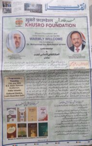 The Advt.to welcome WML Secretary General have been placed in BJP owned Urdu media only showing the intent to cheat Muslims & Why these were not placed in English/Hindi/ Regional media if his welcome was India’s welcome policy? The disrespect to Arabs is further evident with absence of Modi in any of the functions relegated to hindutva masters in garb of NSA who is the payment master of RSS/BJP Muslim workers hosting this visit.
