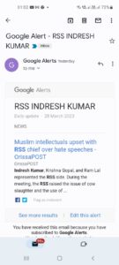(Bismillahnews – 28-03-23- Sohail Siddiqui- New Delhi) The Art of RSS in converting Donkeys into horses unfortunately was self sabotaged by media hungry Indresh Kumar RSS chief of Muslim Manch. Many aware of RSS created “Muslim Intellectuals group” got the final straw on the camels back when today email landed in Google accounts from Indresh Kumar circulating a news post of statement by “Muslim Intellectuals” published in English online portal from Orrisa questioning the RSS silence on hate speech, requesting Mohan Bhagwat to condemn such speeches & take note. Earlier in the day BJP/RSS funded Urdu edition of Hindutva Newspaper Dainik Jagran The Inquilab had carried prominently the RSS sponsored “Muslim” Intellectuals statement.